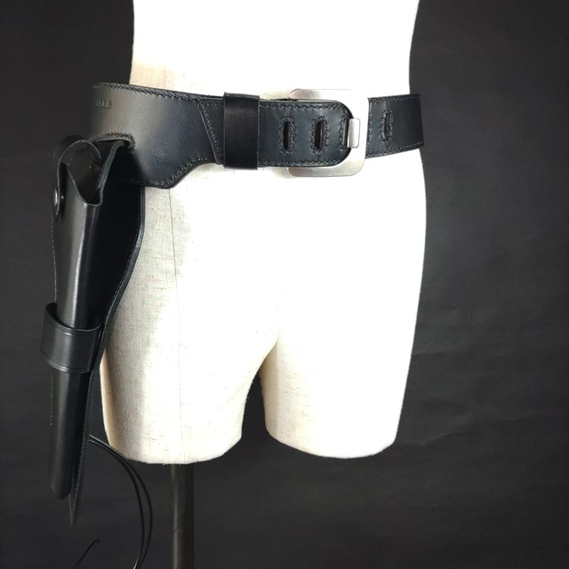 ●艶やかでパリッとした手触りのタンニン鞣しの染料ヌメ本革に手縫いによる縫製で耐久力をアップし、個性的なバックルがカッコいい逸品です。一点限りの限定品です! ●ポーチも付いた充実装備であなたのシューティングやコレクションがより楽しくなります! ※マネキン:標準男性Mサイズ 2~3mm厚のタンニン鞣しのヌメ本革を使ってハンドメイドのホルスターはあなたを感動させます! ※こちらはホルスター・ポーチ・ガンベルトの豪華3点セットです。 ※裁断・縫製と全ての行程を手作業で製作した逸品となっております。 (特徴) 銃の形状に合わせてステッチを入れたジャスト・フィットなホルスターは変わらず。 手縫いによる縫製で耐久力を大幅にアップしております。また、個性的なバックルもカッコよさを引き立てております。ポーチも付属してシンプルながらパンチのある逸品の完成です。 ガンベルトには2mm厚のタンニン鞣しのヌメ本革を使い、胴回り91X107cm以内で使い頂ける お洒落なベルトを作りました。 牛ヌメ本革のホルスターとベルト・ポーチは使い込むほど良く馴染み風合いを増す、永くご愛用して頂ける大人のための逸品です。 この製品は、染料のため、使い込むほどに味が出て、経年変化をお楽しみ頂けると共に、長く使えば使うほど馴染んできます。手入れを怠らなければ永くご愛用して頂けます。 メンテナンスは市販の「ミンクオイル」を塗り込んで頂き、保湿を保つことをお勧めいたします。 スペック: ホルスター部分(2mm染料ヌメ革使用) ハンマーストッパー有り ベルト部分:(3mm厚ヌメ本革)推奨胴回り91X107cmほどの範囲でご使用頂けます。 ポーチ:ヌメ本革製 今回の販売はホルスター・ベルト・ポーチの3点セットのみとなります。 トイガンはサンプルとして販売は行っておりません。 ※当店のホルスターはトイガン専用で製作しております。実銃へのご使用は任意でお願いいたします。 ※こちらは商品保障付きとなります。 ※販売目的で当店の画像及び文章の無断使用は禁止しております。