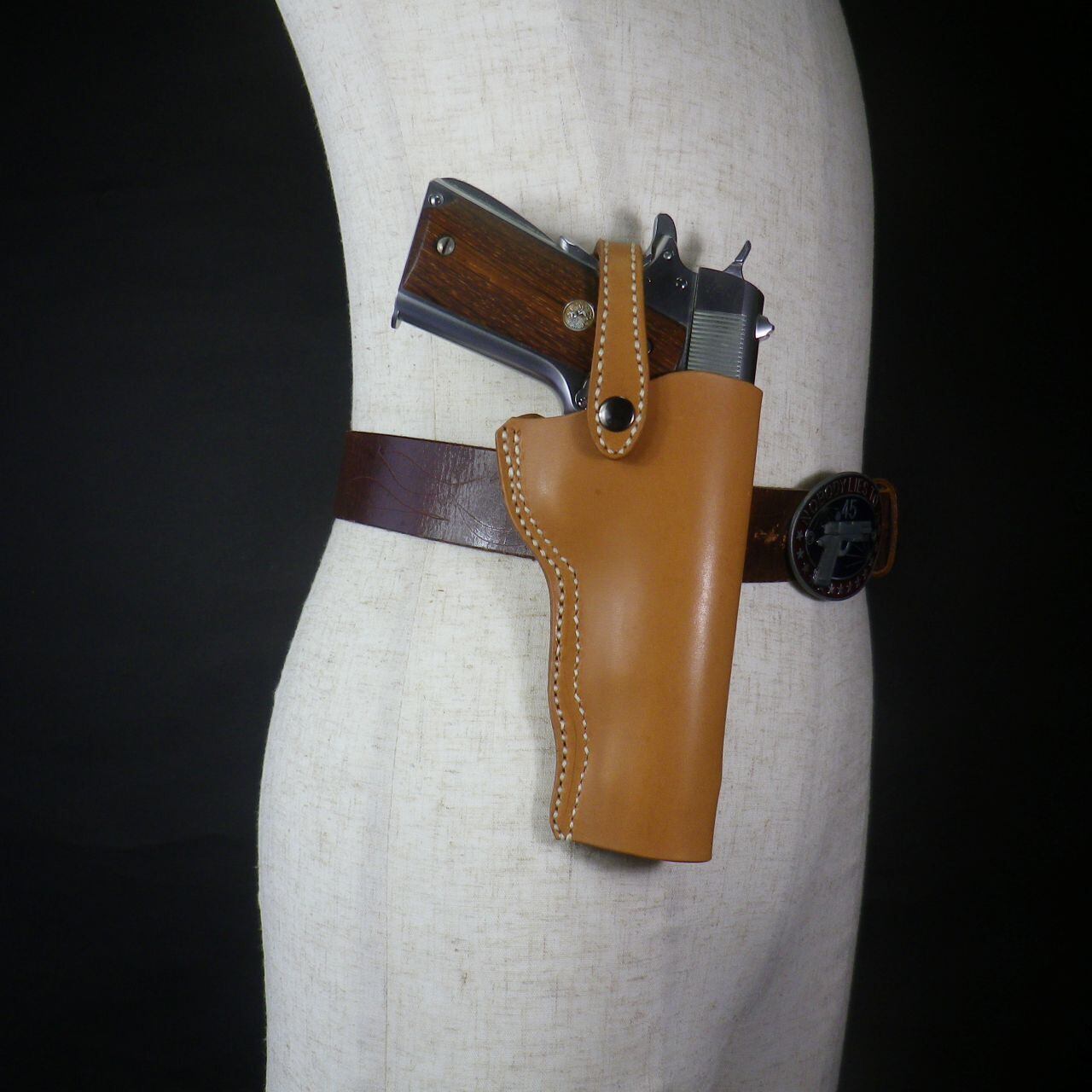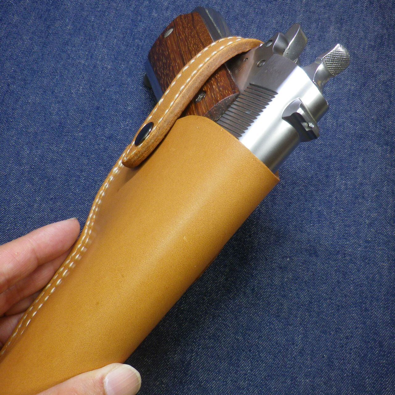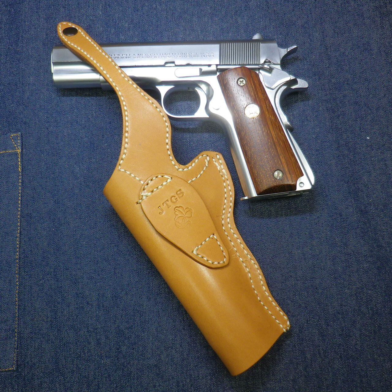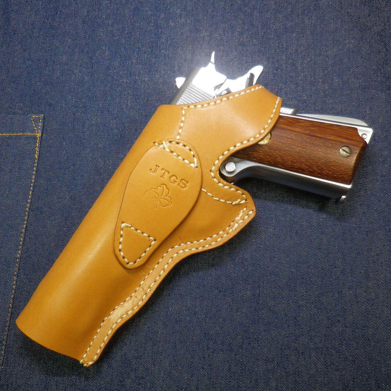 3mm厚のタンニン鞣しのヌメ本革を使いコルトM1911A1に合わせて、ハンドメイドのホルスターはあなたを感動させます!