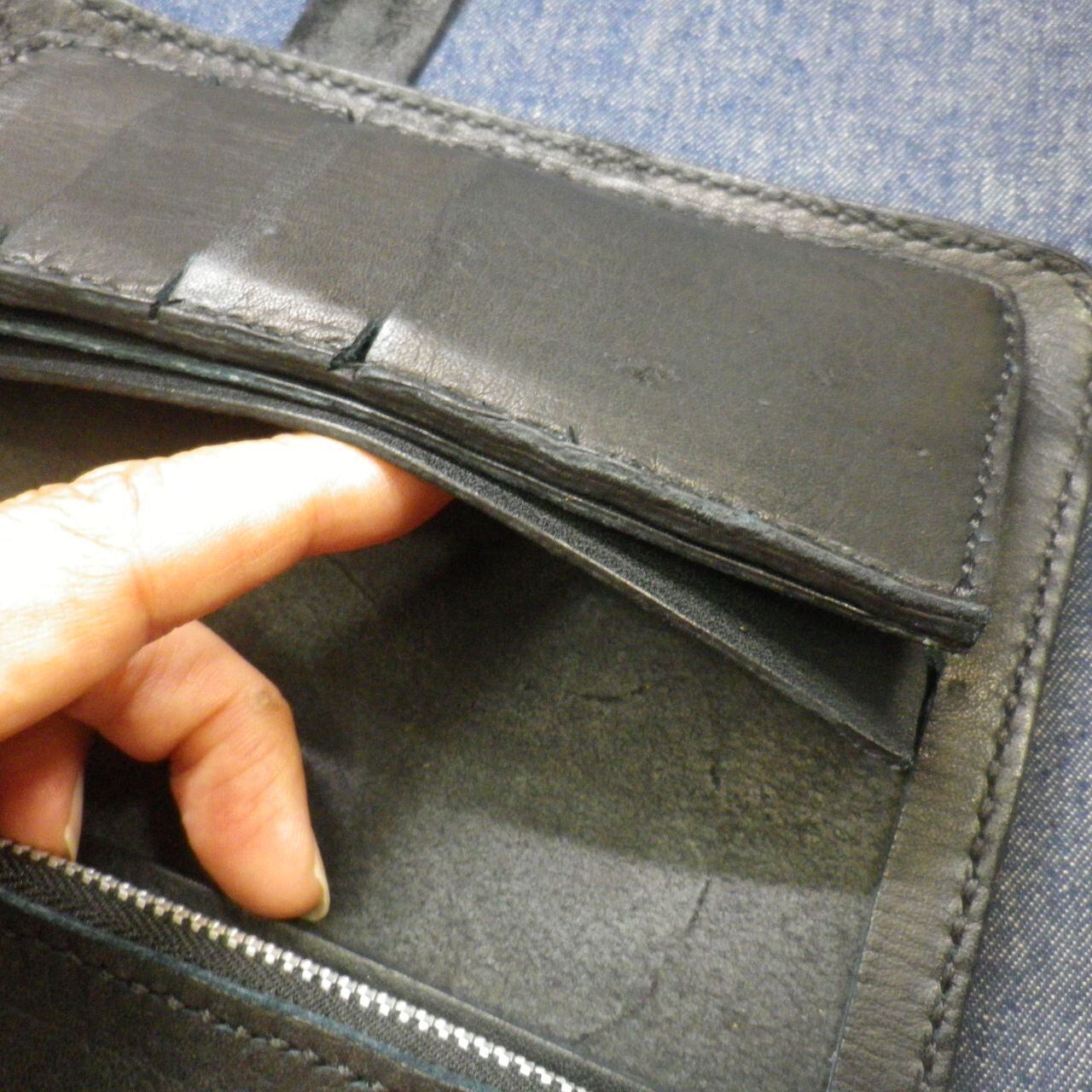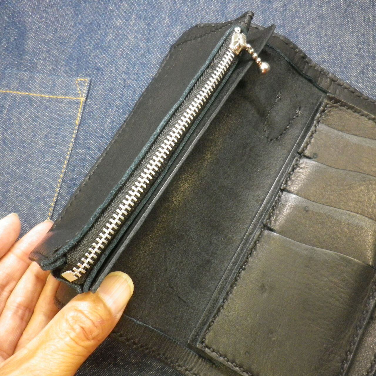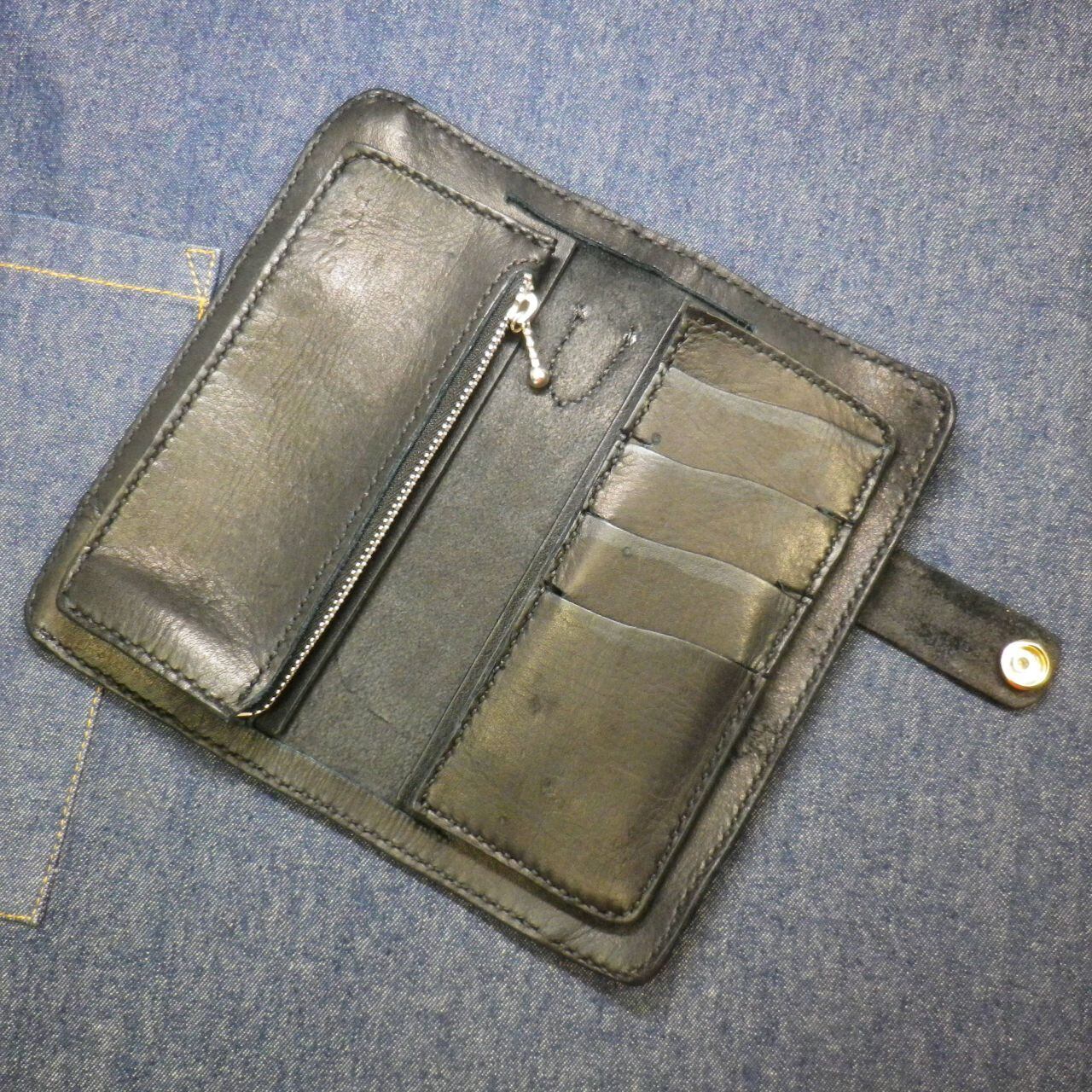 ボタンフックがついており、不用意に開くことを防止いたします。またコインケースにはマチも付けてありコインの出し入れもしやすくなっております。