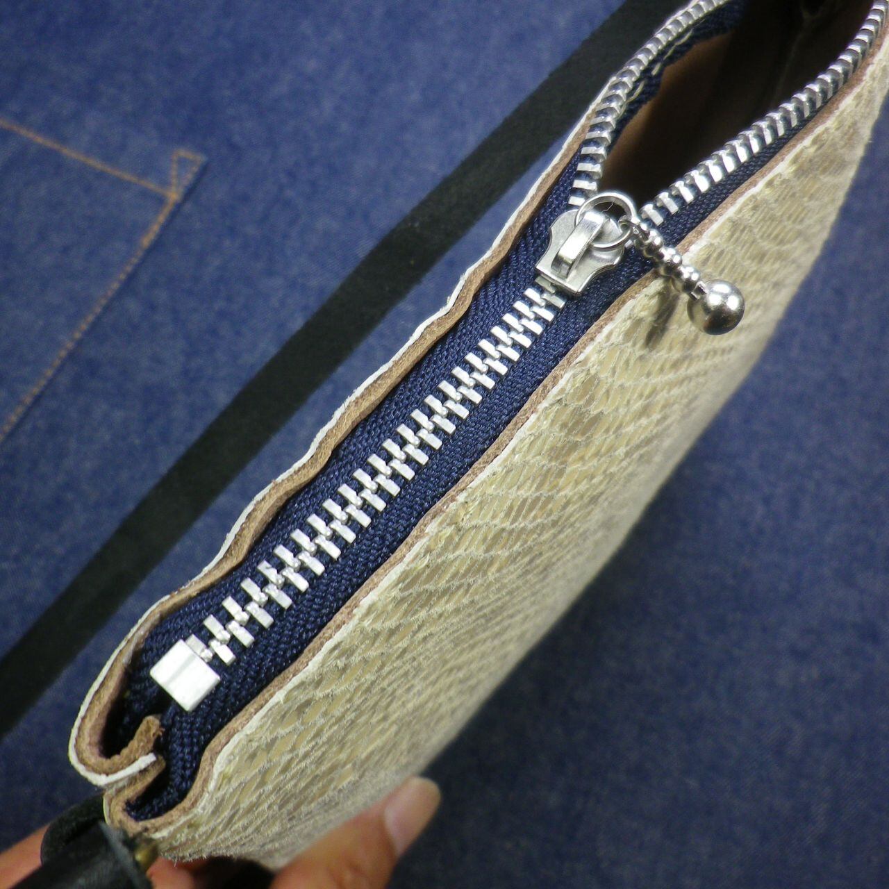 牛革表面にプリント仕様。内側にも羊革を縫い合わせてあります。