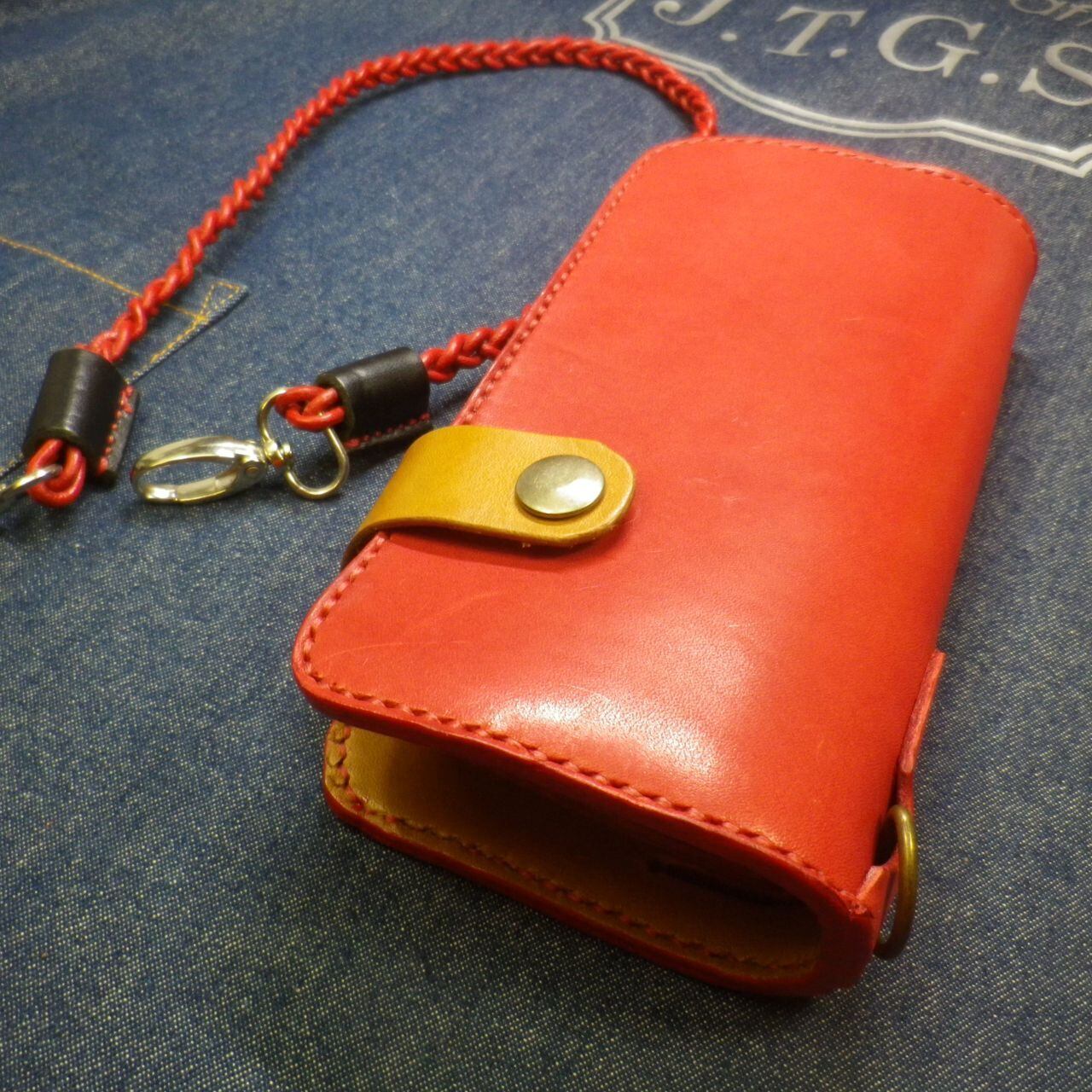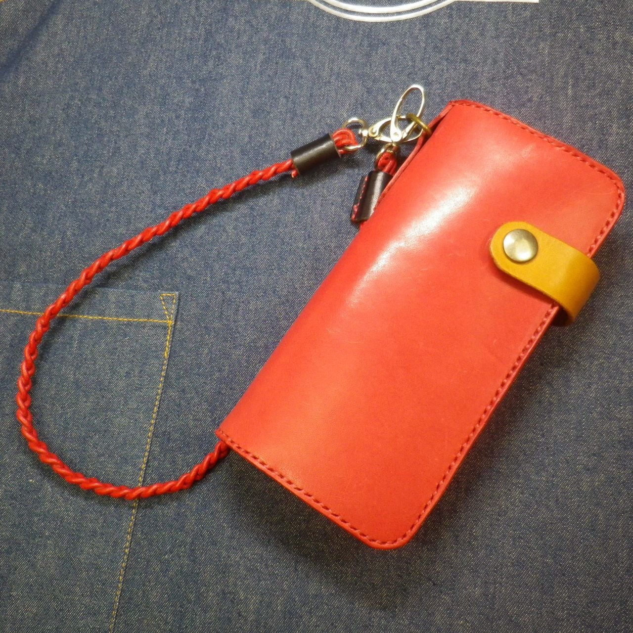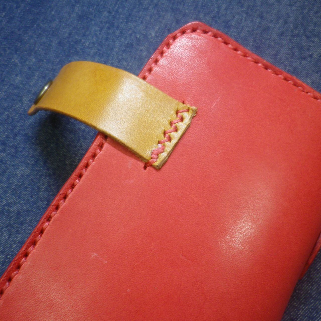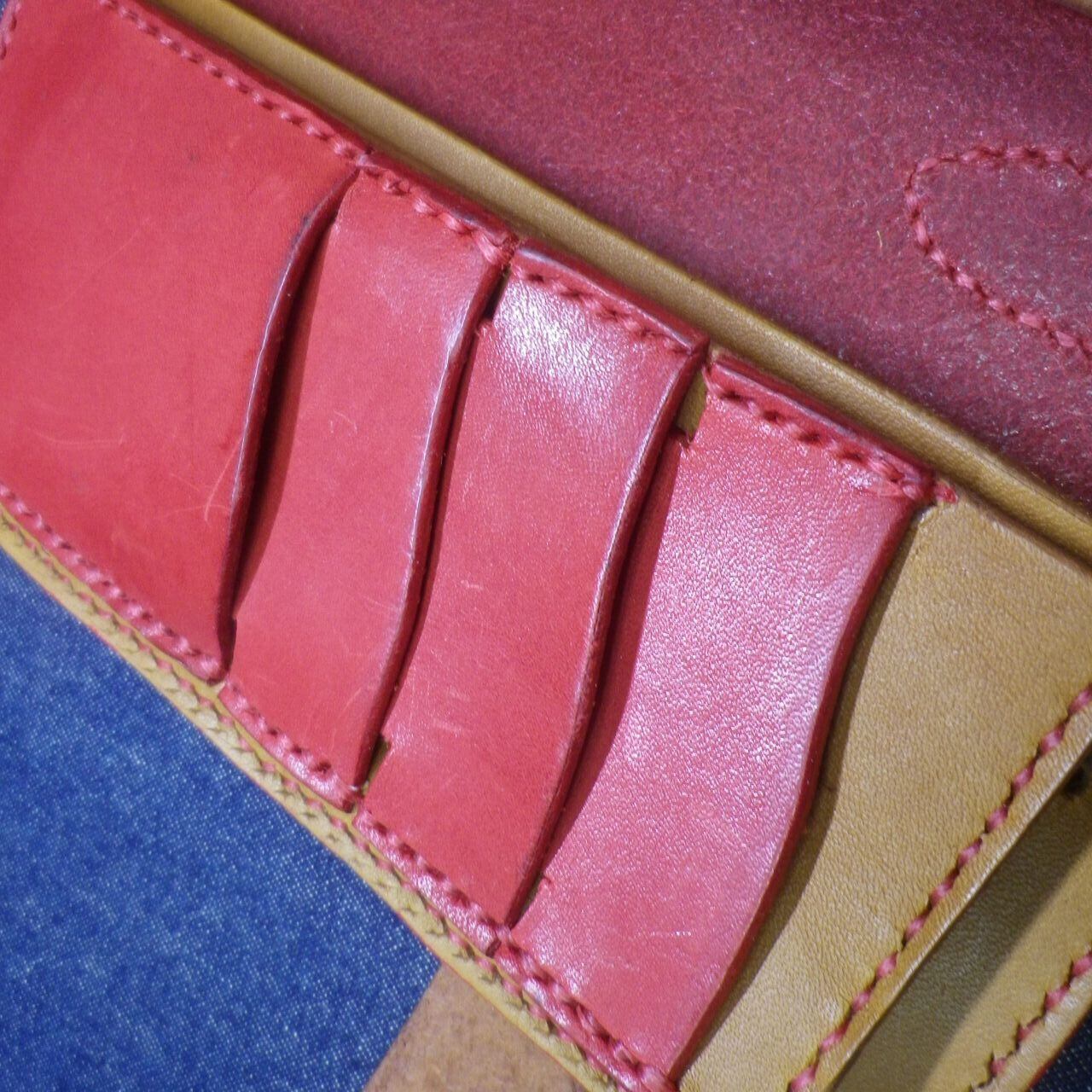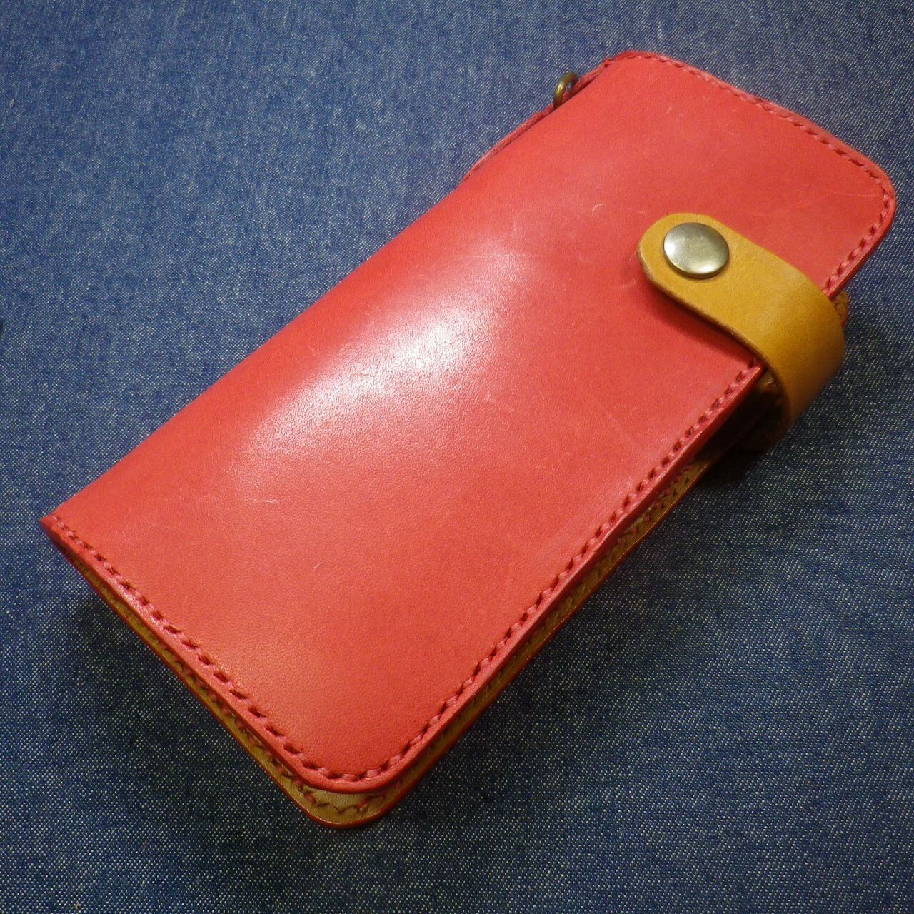 表面にヌメ本革を使い裁断・縫製と全ての行程をハンドメイドで製作した逸品の長財布が出来上がりました。不用意に開いてしまうことを防止するボタンフックや、カードケースやジッパー付きのコインケースもすべてヌメ本革で作り込んであります。