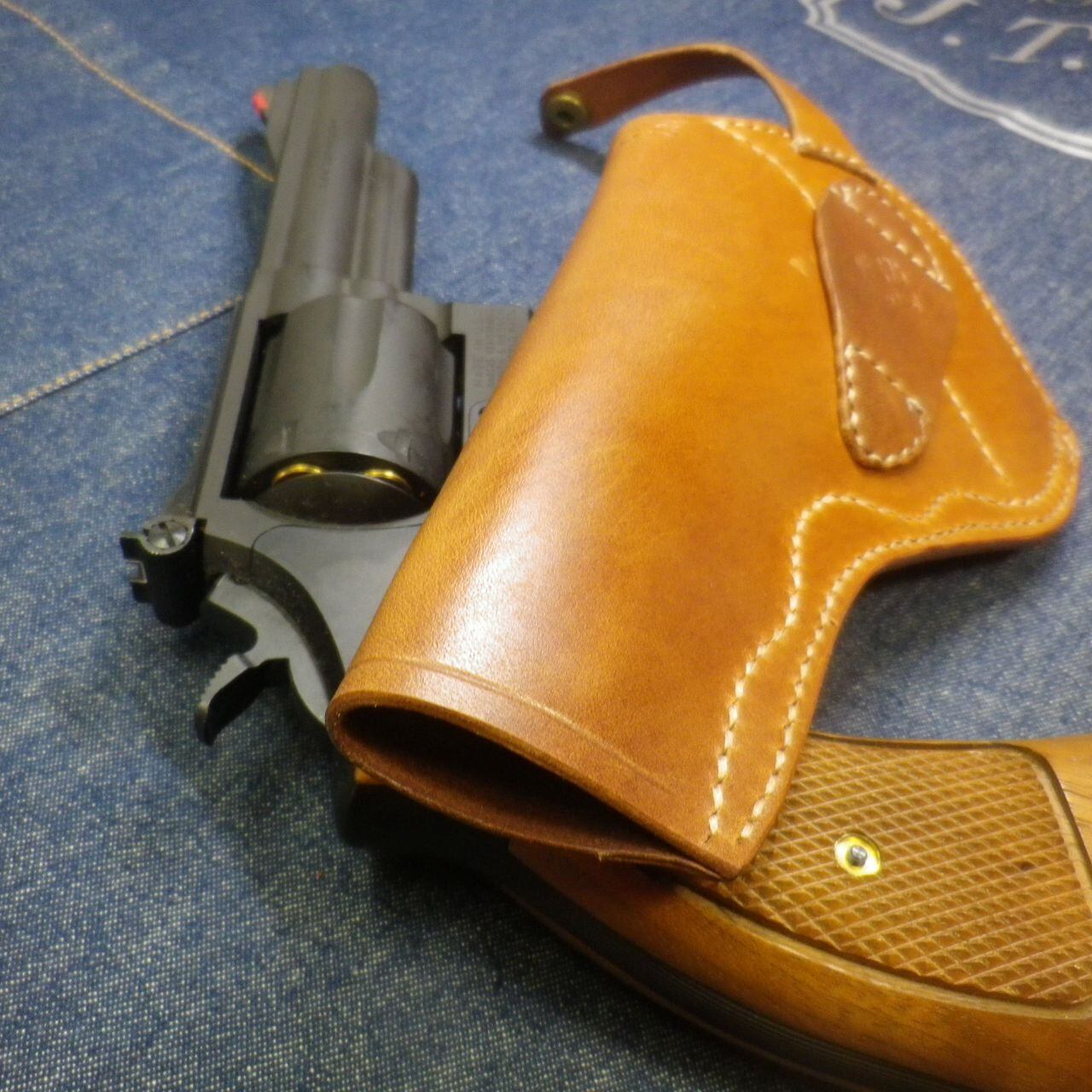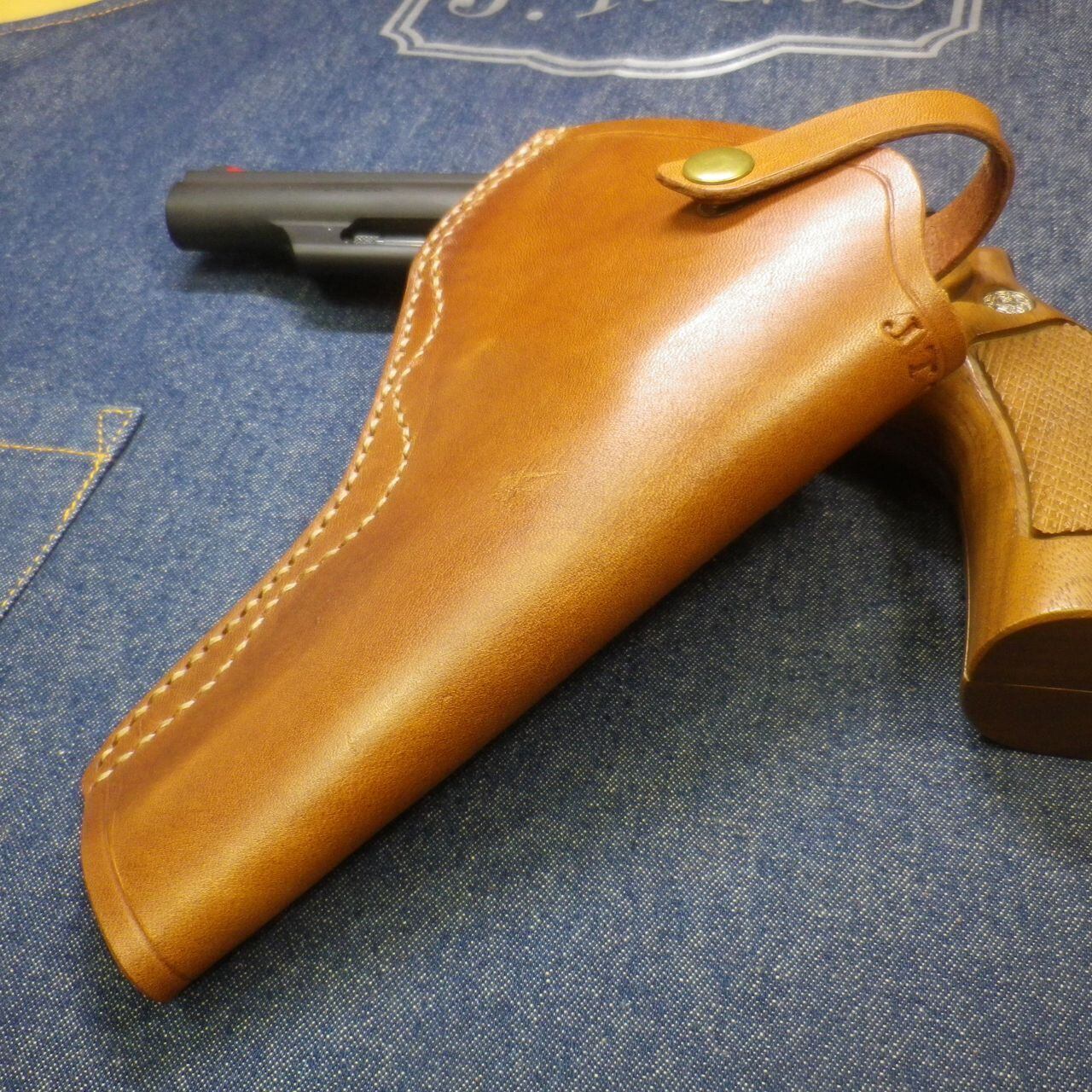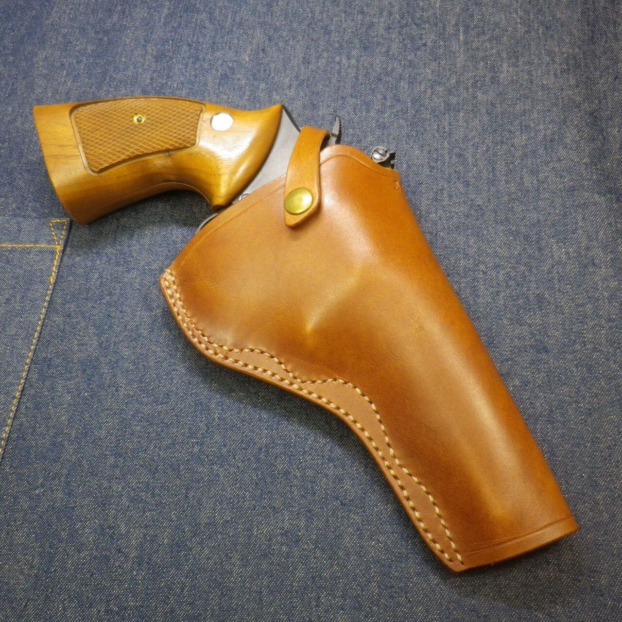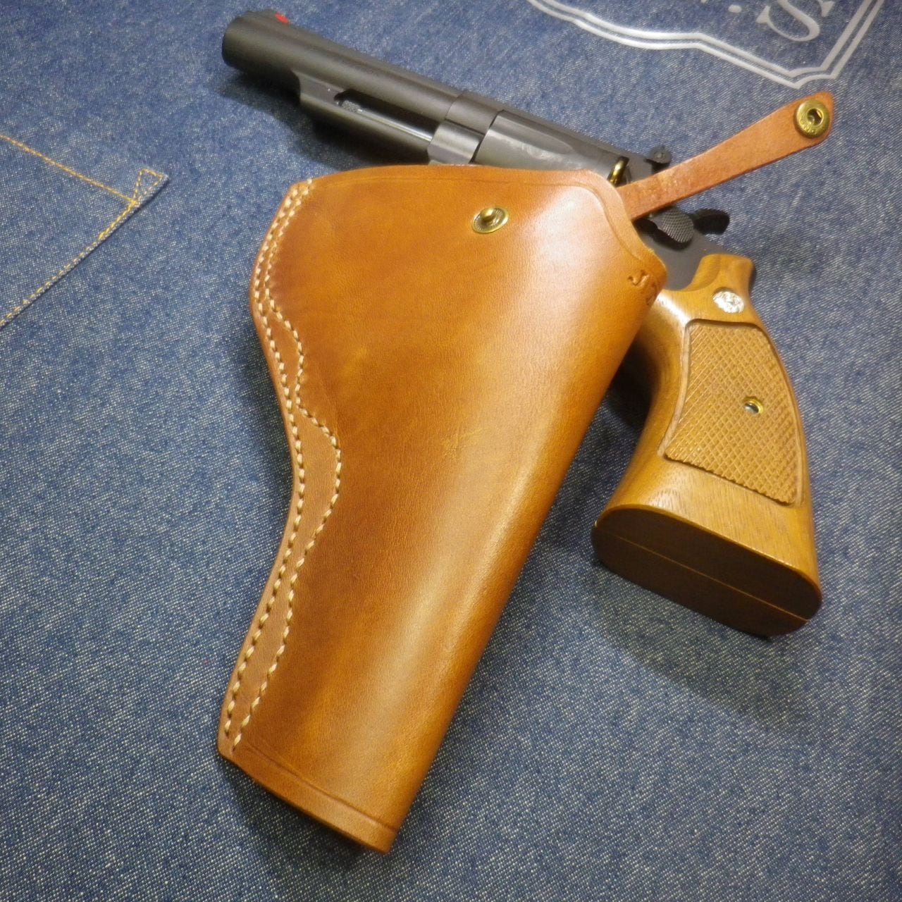 タンニン鞣しのヌメ本革を使い4インチM19に合わせて、ハンドメイドのオーソドックなホルスターはあなたを感動させます!