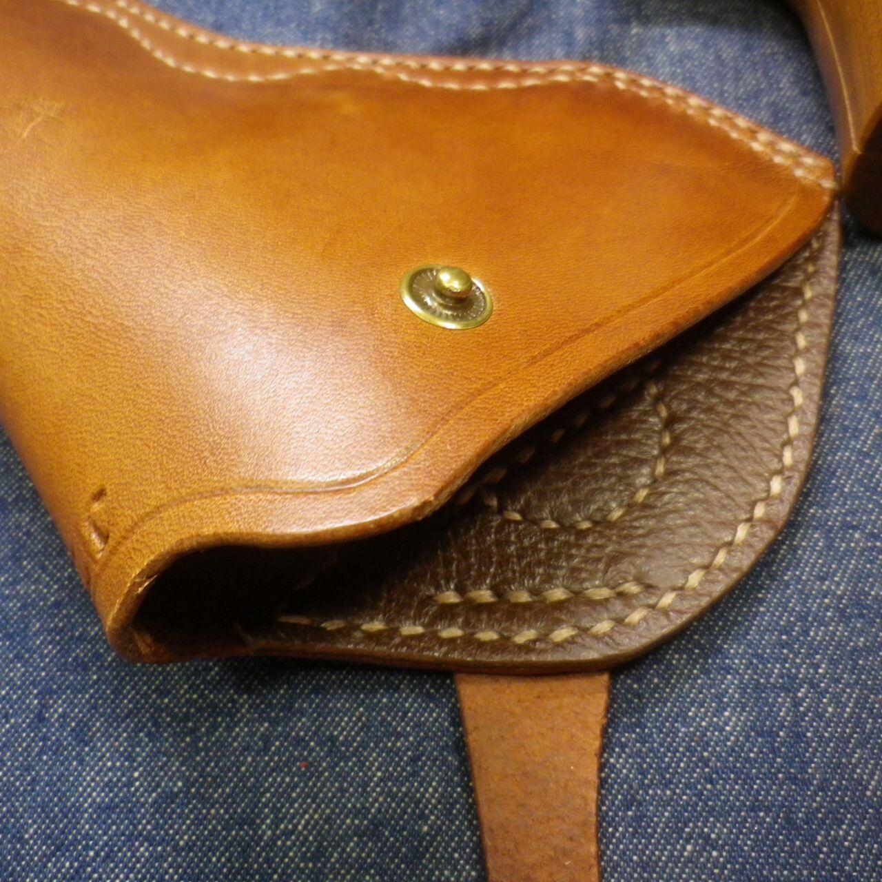銃の形状に合わせてステッチを入れたジャスト・フィットなホルスターは、タフでお洒落なだけでなく、使い込むほど良く馴染み経年変化で色の風合いを増す、大人のための逸品です。