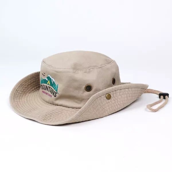 両側をスナップボタンで留めるとカウボウイハットの様にもなります。