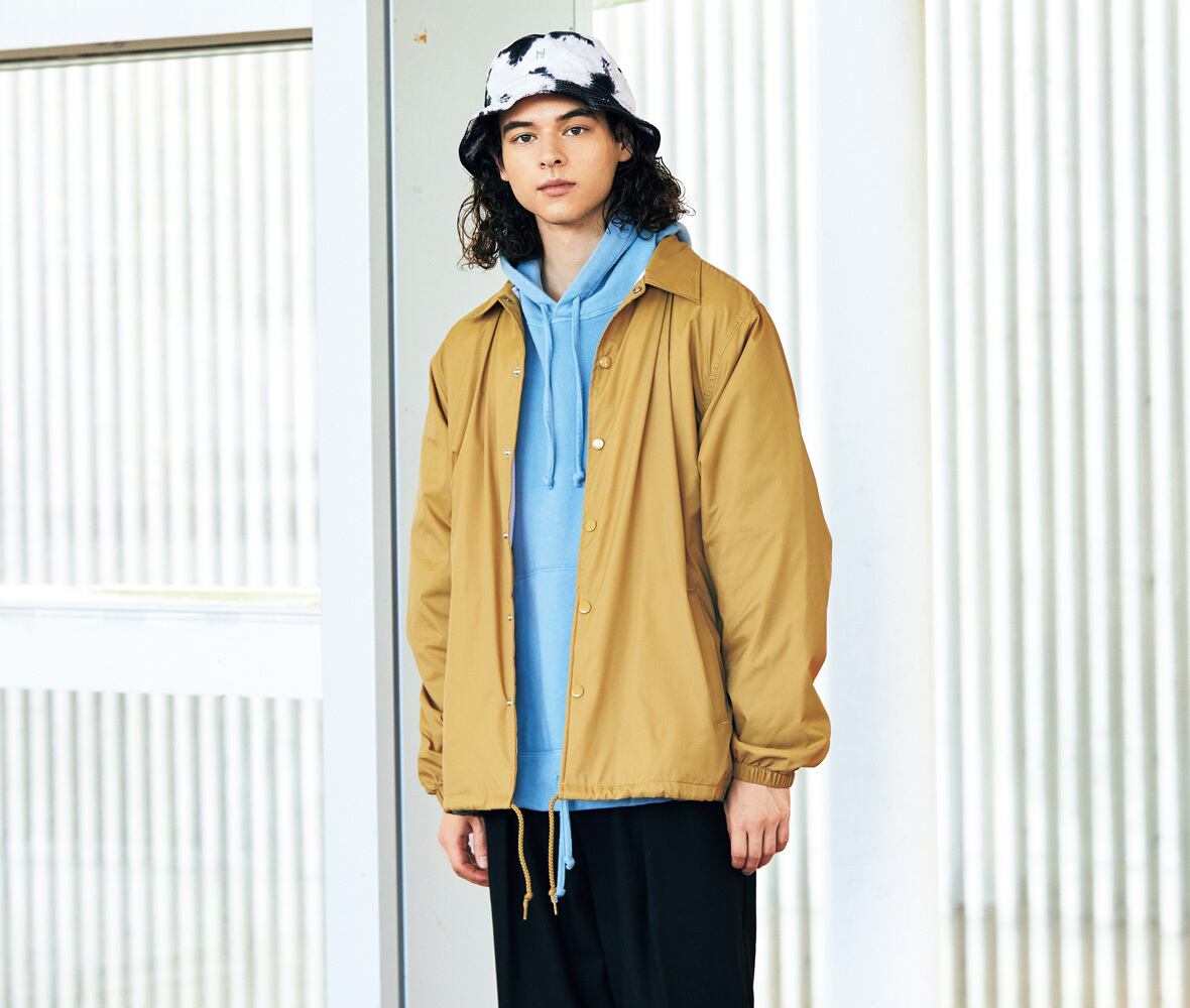 定番のシンプルなコーチジャケットに細かいギミックを加えた