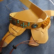 ベルト・ホルスター装飾:ターコイズブルーの石と刻印プレス