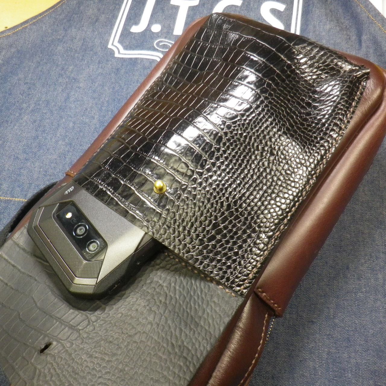 素材:タンニン鞣し染料牛ヌメ革 ポケット部分:豚革押し型