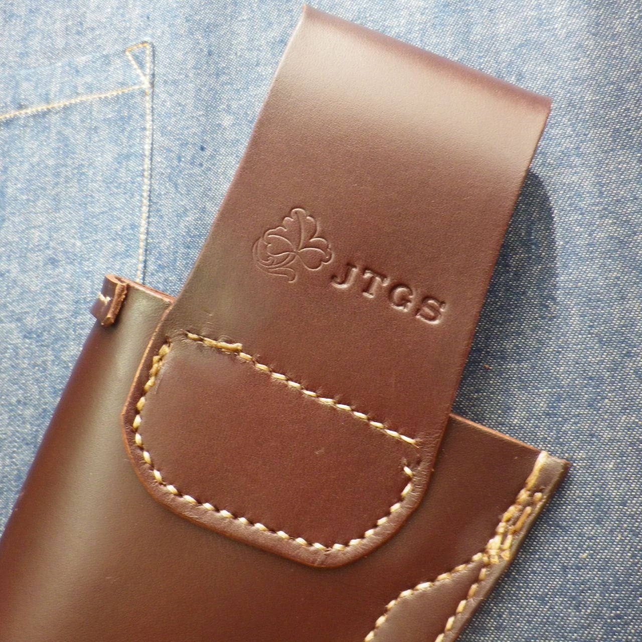 戦士の銃をモチーフにしてJTGSオリジナル・デザインの本革を使い、