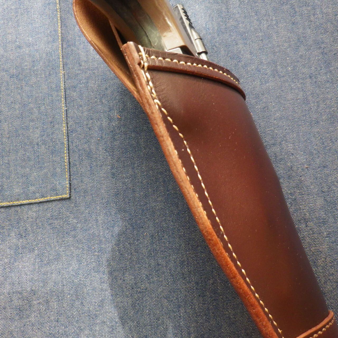 タンニン鞣しの本革を使い手縫いのホルスターはあなたを感動させます!