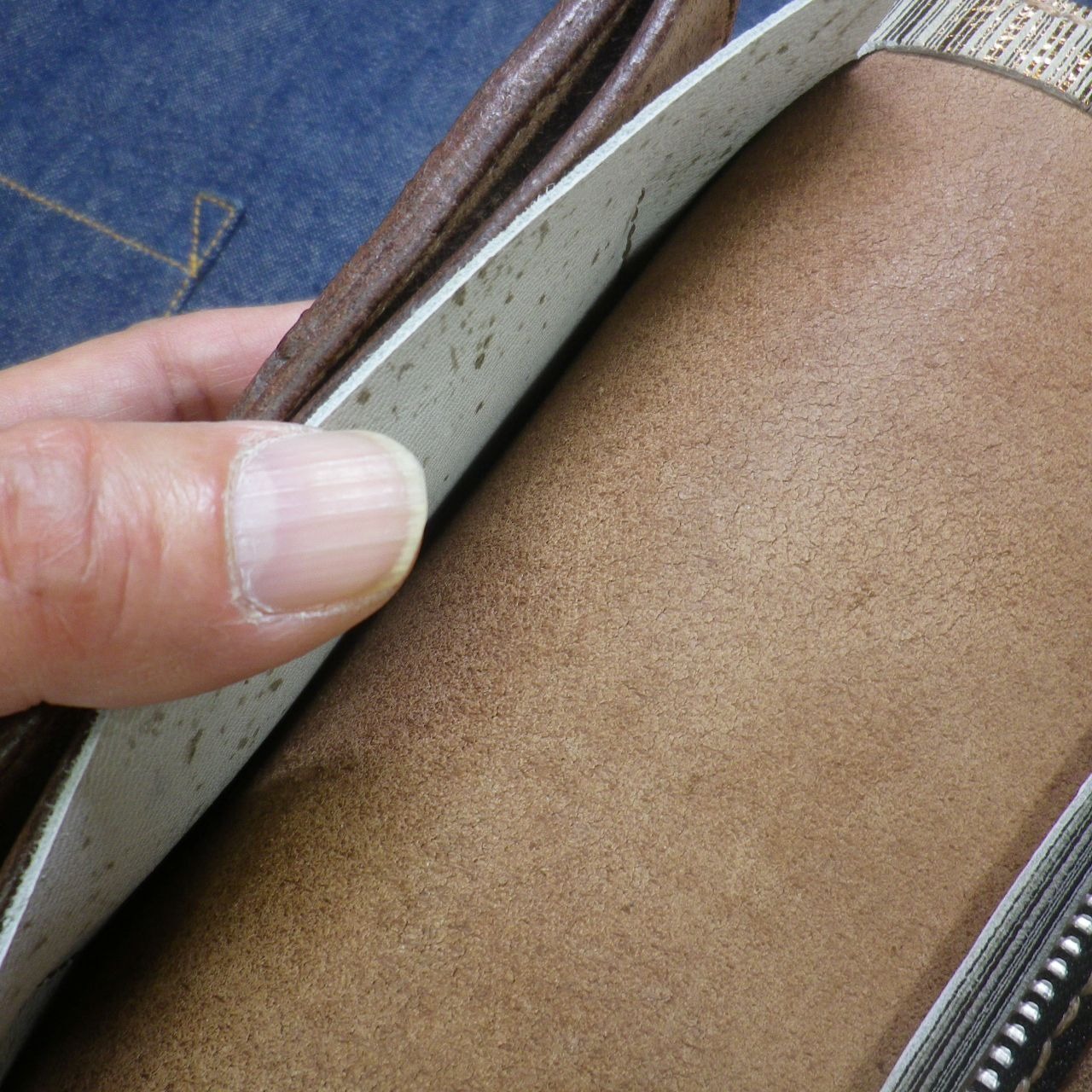 タンニン鞣しの染料ヌメ革を使っているため、メンテナンスは市販の「ミンクオイル」を塗り込んで頂くと永くご愛用して頂けます。
