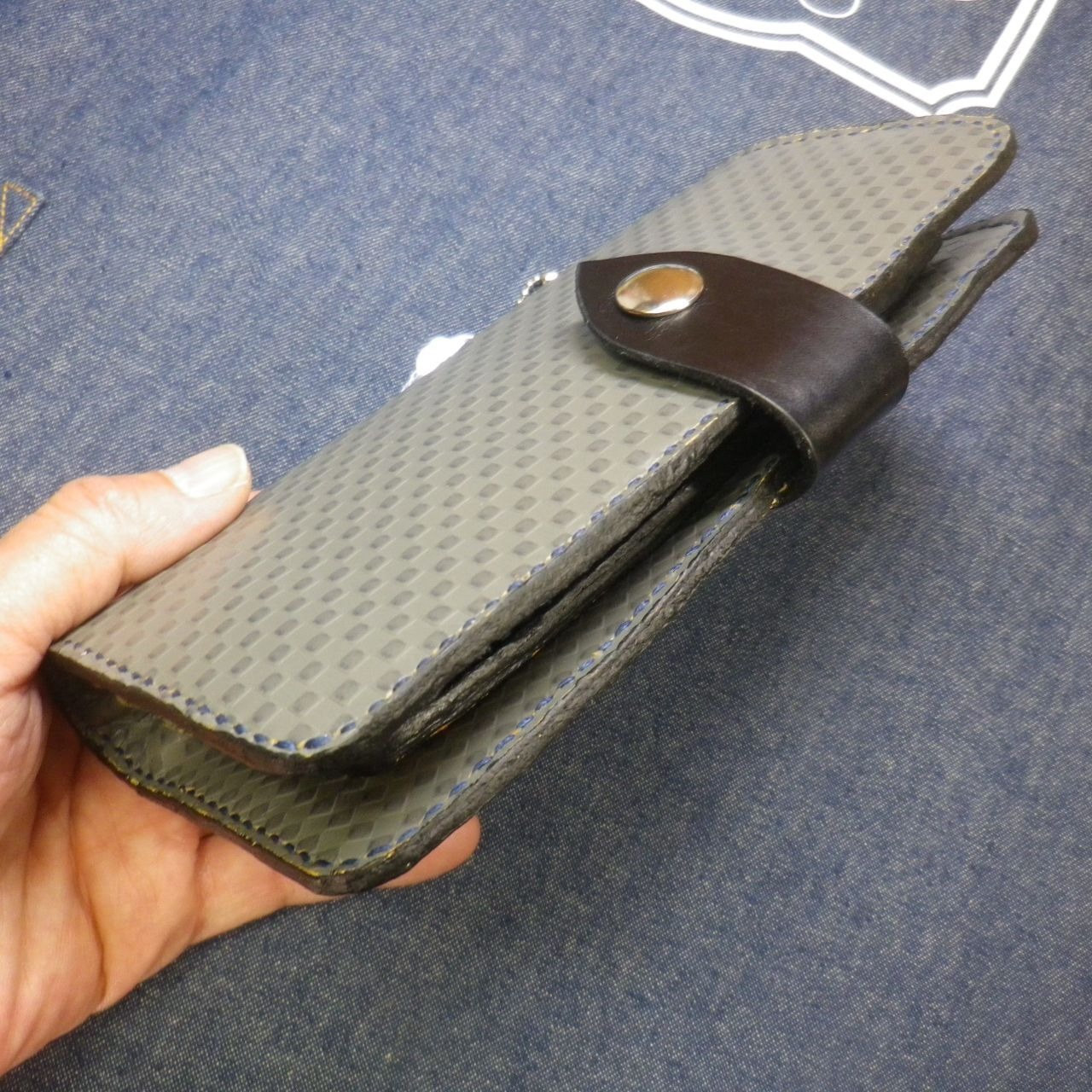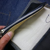 シープスキンに押し型を施した本革を使い、一針一針丁寧に手縫いにて製作した逸品です。