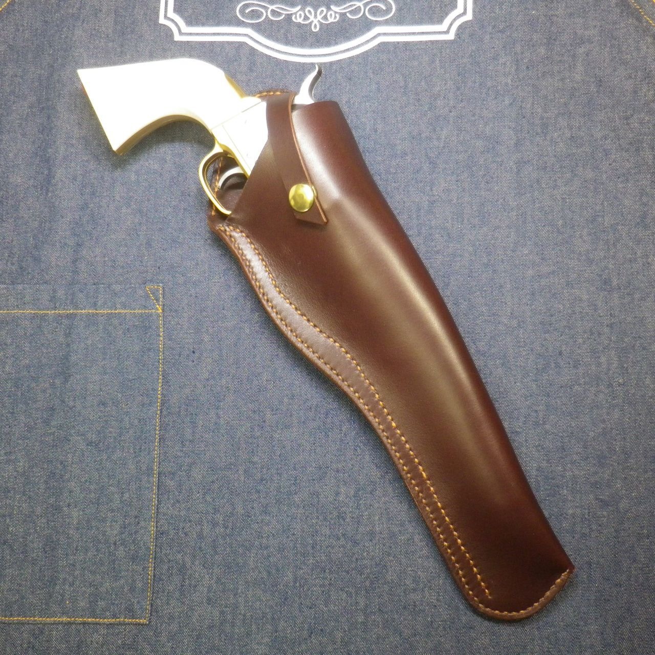 銃の形状に合わせてステッチを入れたジャスト・フィットなホルスターは、タフでお洒落なだけでなく、使い込むほど良く馴染み風合いを増す、大人のための逸品です。