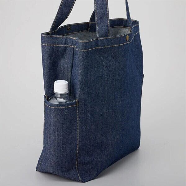 A4サイズも余裕をもって入れることができるマチ付きのデニムバッグは、日常使いはもちろん通勤通学バッグ、お買い物バッグなど年齢・性別を問わず様々なシーンでお使いいただけます。
