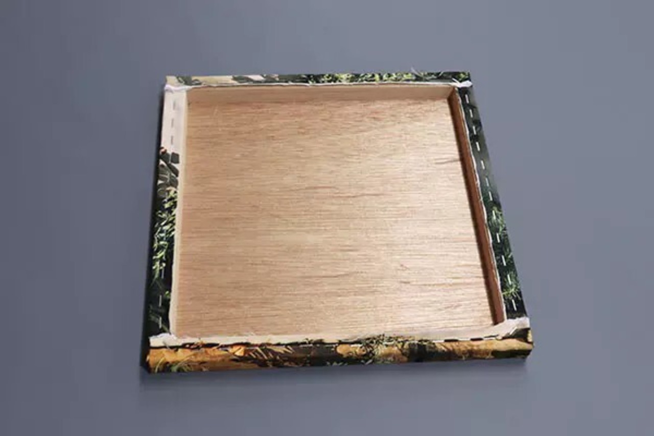 木の枠にキャンバスの生地を留めた状態でお届けします。