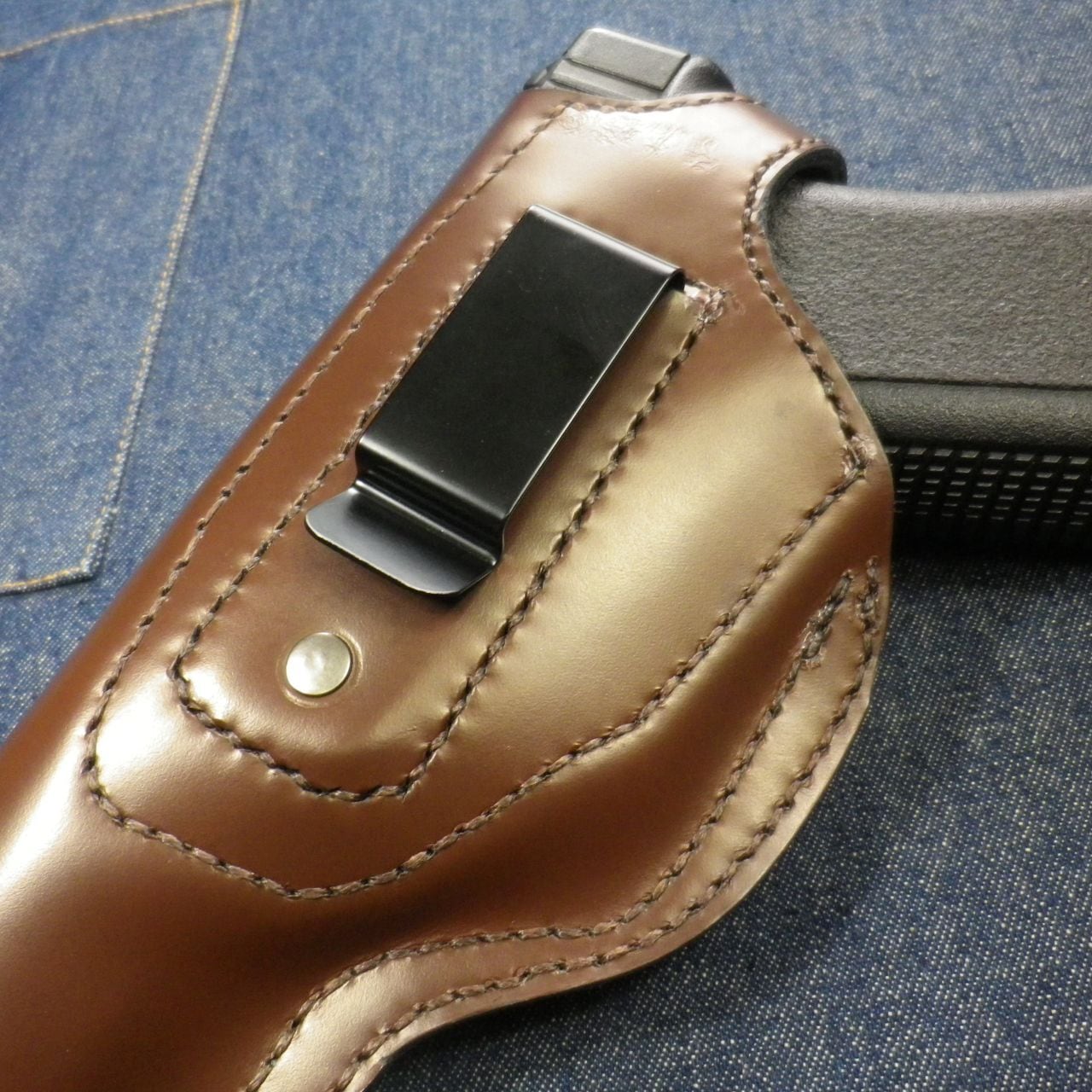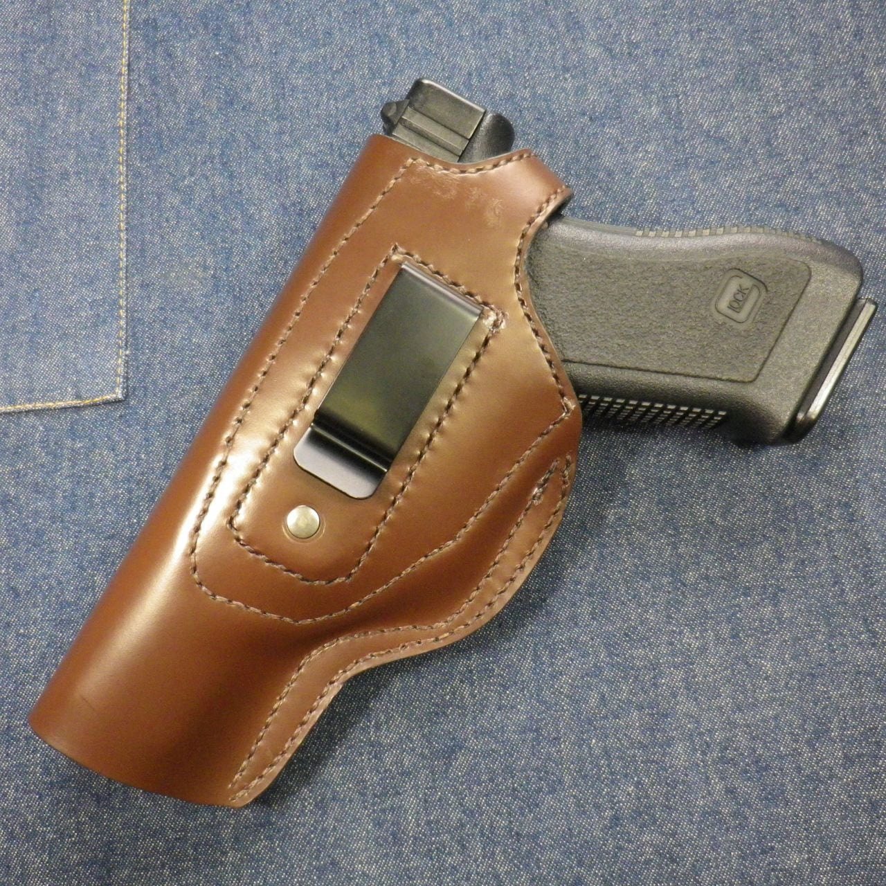 本革製グロック用ヒップホルスター(メタルクリップ式)